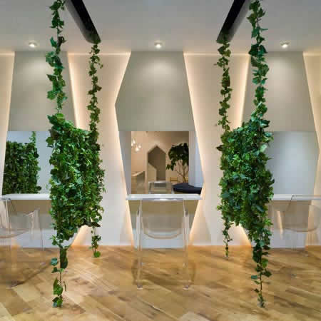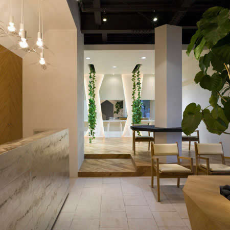 Dessence的日本設(shè)計(jì)師Kazutoyo Yamamoto打造了一家掛著葡萄的美容院,位于日本埼玉。 命名為Garden By Be Area,該項(xiàng)目旨在利用懸浮葡萄空間與為戶外分離。上層樹葉覆蓋洗發(fā)領(lǐng)域,其裝飾是鑲木地板和木制柜。玻璃等候室配有兩棵大樹和木制家具。美容院外觀是反射面的表面。Yamamoto說,他試圖創(chuàng)造一個(gè)空間“表達(dá)現(xiàn)代自然的和諧”。