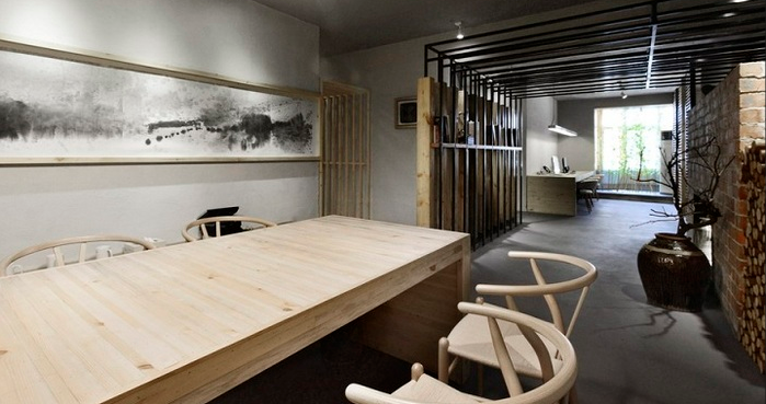 2、借景:在辦公室裝修采用和室外某些相同的元素,使辦公室裝修外的景色渾然一體,空間因而得以視覺上的延伸;或在辦公室裝修掛一幅面積較大的山水畫,從而產生無限空間的感覺。