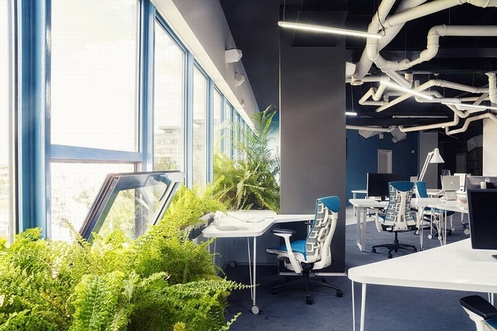 辦公室裝修設(shè)計(jì)以開放的格局營造寬敞的空間體量,清新靚麗的色彩和豐富的材質(zhì)肌理令整個(gè)空間有著大學(xué)校園般的青春氛圍。可調(diào)節(jié)高度的升降桌、充滿活力的綠植墻、提供健康飲食和零食的自助餐吧,體現(xiàn)以人為本的設(shè)計(jì)哲學(xué)。協(xié)作區(qū)與員工工位沿窗布局,明媚的陽光從開敞的外窗盡情灑進(jìn)室內(nèi),而遠(yuǎn)處蔥蘢的美景也盡收眼底,令人心曠神怡元?dú)鉂M滿。