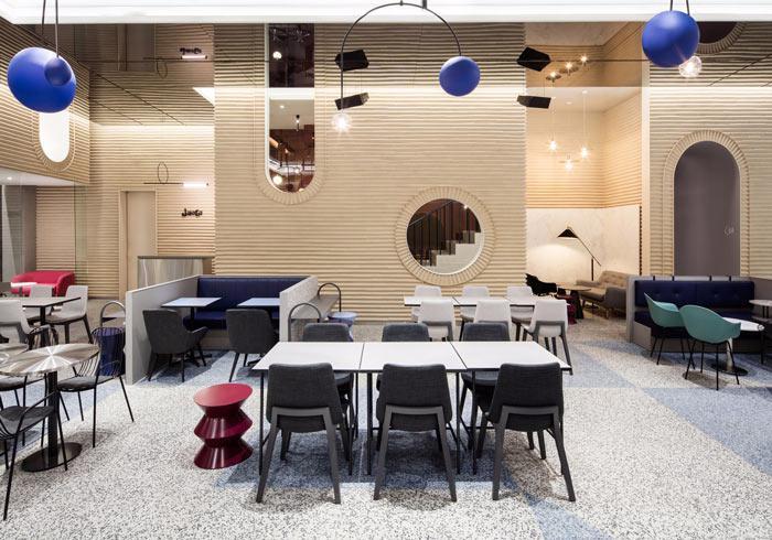 辦公室吧臺(tái)裝修:大家在這里匯聚喝喝咖啡、聊聊天,也是一種不錯(cuò)的生活,藝術(shù)來(lái)源于生活,在傳媒行業(yè)更是如此,藝術(shù)與生活可以在空間并存。 企業(yè)擁有各種各樣不同的團(tuán)隊(duì),各個(gè)團(tuán)隊(duì)集合在這里,相互認(rèn)識(shí)、相關(guān)交流,讓思想的火花可以一直延續(xù)下去。