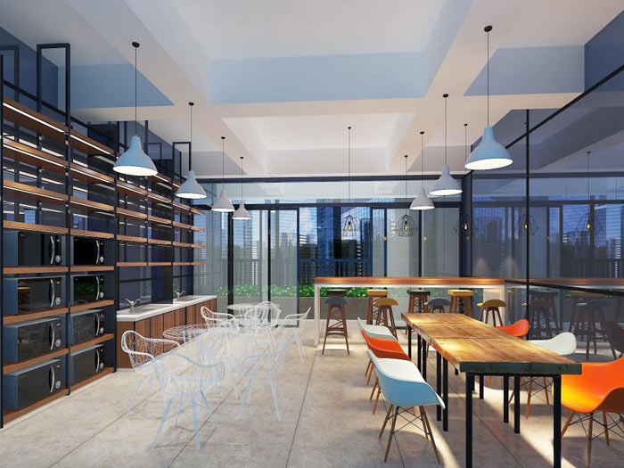 辦公室茶水間設(shè)計:員工在這里休息、娛樂,這里采用的是工業(yè)風(fēng)的設(shè)計,目的就是希望員工在這里沒有任何壓力,讓員工在這里得到暫時的安寧。