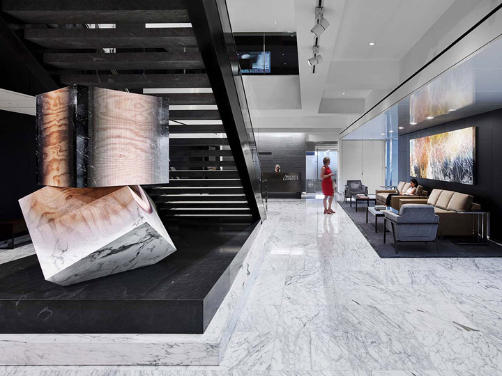 客戶將之前辦公室收藏的藝術(shù)品也展示于新的工作場(chǎng)所中。他們還拍賣(mài)了一些珍貴的藝術(shù)品,從紐約當(dāng)?shù)厮囆g(shù)家那里購(gòu)買(mǎi)當(dāng)代繪畫(huà)和雕塑,極簡(jiǎn)而凝練的現(xiàn)代空間在這些藝術(shù)品的映襯下更具時(shí)尚文化魅力。