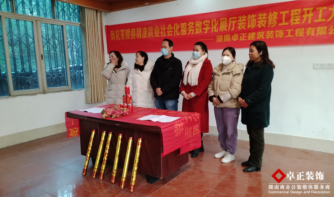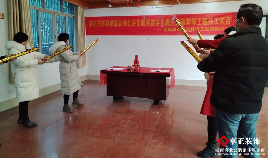該數(shù)字展廳裝修工程項(xiàng)目是湖南卓正裝飾公司為茶林縣精準(zhǔn)就業(yè)社會(huì)化服務(wù)數(shù)字化展廳空間從設(shè)計(jì)、消防、施工一站式整裝工程,根據(jù)中國(guó)傳統(tǒng)文化選擇黃道吉日已于日前開工,值此春風(fēng)拂柳,萬物復(fù)蘇的良辰美景之時(shí),湖南卓正裝飾感謝茶林縣精準(zhǔn)就業(yè)社會(huì)化服務(wù)展廳公司對(duì)我們的信任支持,并熱烈祝賀茶林縣精準(zhǔn)就業(yè)社會(huì)化服務(wù)數(shù)字化展廳裝飾裝修工程開工大吉,預(yù)祝項(xiàng)目工程完滿峻工!